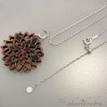 檜の木を透かし彫りに彫刻し幾重にも漆を塗り重ねた螺鈿ペンダント。