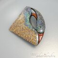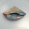 檜の木を彫刻し幾重にも漆を塗り重ねた立体彫刻のブローチ。
