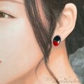 赤と黒の楕円形漆イヤリング。飽きが来ない使いやすい定番のオーバルイヤリング。