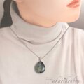 黒蝶貝の輝きを引き立てるために下地にプラチナ箔を使用した贅沢な作りの螺鈿ペンダントです。