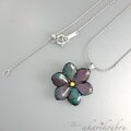 【sv925】螺鈿ペンダント 黒蝶貝螺鈿 六弁花 純金箔 プラチナ箔:金沢漆器 漆工芸 螺鈿ジュエリー