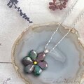 【sv925】螺鈿ペンダント 黒蝶貝螺鈿 六弁花 純金箔 プラチナ箔