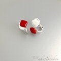小さな赤い四角形漆イヤリング。