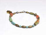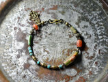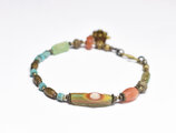 アイ模様ローマングラスとアフリカ出土カーネリアン、民族ブラスとターコイズ、ハムサチャームを繋いだブレスです。