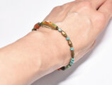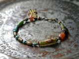 アイ模様ローマングラスとアフリカ出土カーネリアン、民族ブラスとターコイズ、ハムサチャームのブレス
