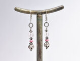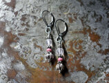 アンティークグーズベリーとピンクマサイ、巾着カレンシルバーを繋いだピアスです。