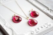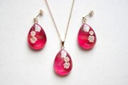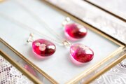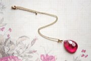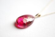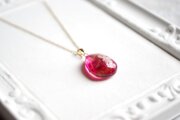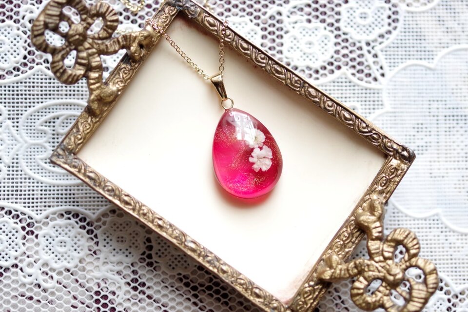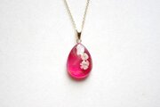 ドロップ型のレジンにお花を二輪咲かせた可憐なペンダントです。