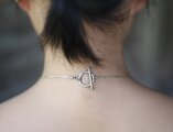 槌目模様の大粒シルバーなどと合わせ、程よく重厚なシルバーネックレスに仕立てました。
