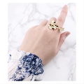 2連リングは、2つのリングが連結されたデザインのリングです。上品で華やかなクローバーのデザインが特徴であり、一つの指に2つのリングを着けたような効果を楽しむことができます。華やかでエレガントなデザインで様々なスタイルに合わせて楽しむことができます。オシャレなアクセサリーとして人気のあるアイテムです。
