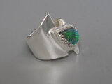 角度により、遊色がグリーンやネオンブルーに煌めきます。