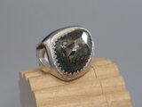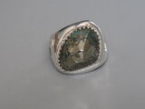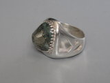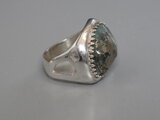 リングのサイズは15号、重さは13g、最大幅は20mm、手のひら側は6mm、金属部分は純銀です。