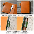 仕様:内面左側ポケット×1 右側ポケット×1 メモ固定ホルダー×1 伸縮ペンホルダー×1 付き