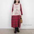 ・[予約販売] テッキングレッドタータンピンタックパフワンピース