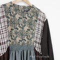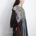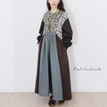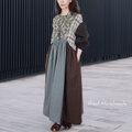 北欧フラワーとチェックのミックスリネン・シャーリングマキシワンピース