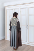 後ろ襟ぐりはループボタン留めで、後ろ姿も素敵です。
