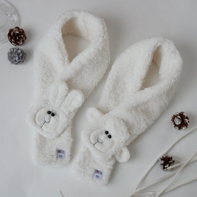 肌触りの良いもこもこのシープボアを使用した幼児用マフラーです。