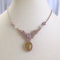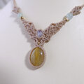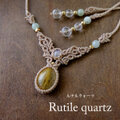 ルチルクォーツ(ブラジル産)・ムーンストーン(スリランカ産) 天然石マクラメ編みチョーカーネックレス 3153のコピー