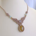 美しさと力強さをあわせもつ天然石が引き立つように、明るめのコードで個性的で存在感溢れる1点ものアクセサリーに仕上げました。
