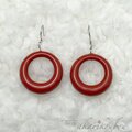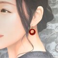 下側に厚みを持たせた艶のある赤い輪ピアス。側面には金箔のラインを施してあります。