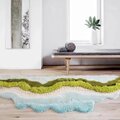 縦横千鳥織りという技法で、色を2回織り込むことでシルクのような光沢感を出しました。 一般的な糸をブレンドしてさまざまな形や模様を作り出します。 カラーマッチング、素材感の衝突と融合、多彩な織り技術により、まるで芸術作品のようなモルディブの波のカーペットです。
