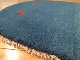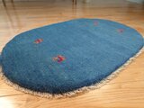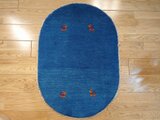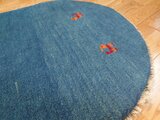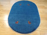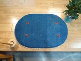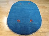 新入荷】ペルシャ ギャッベ 玄関マット ラグ 88Φ62cm 楕円形 小判型 青色 ヤギ 羊 RJ12719G