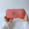 上品な光沢のある色糸を重ねて、ハートを刺繍したお財布です。