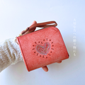 イタリアンレザー × 刺繍革財布『HEART』アラスカRED(牛革)コンパクト型