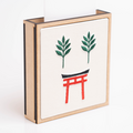 鳥居・榊の刺繍をあしらい、祈りの形を表現するとともに、空間を可愛らしく彩るアクセントとしてもお楽しみいただけます。