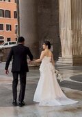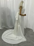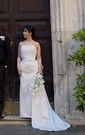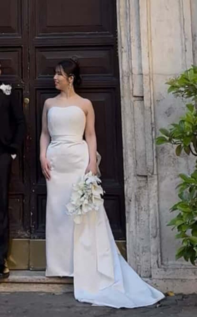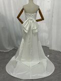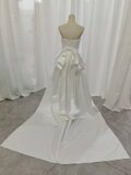 実例写真!ウエディングドレス ベアトップ 光沢サテン 豪華なバックリボン 編み上げ 拳式/前撮り