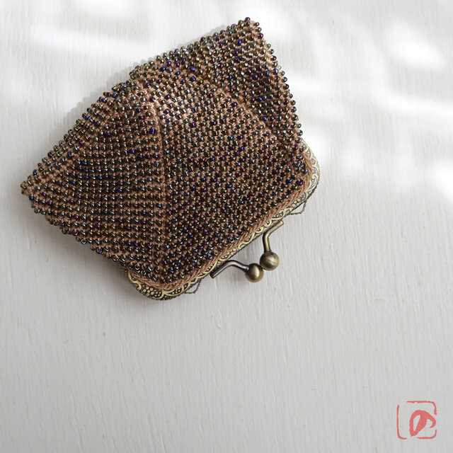 2mmの日本製シードビーズをひとつぶづつ全面に編み込んだ、上質ながま口です。