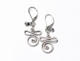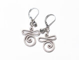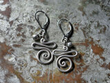 くにゃっと渦巻きカレンシルバーとインドシルバー鈴を繋いだピアスです