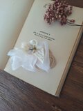 古い手紙や日記の一頁をそっと切り取ったような、アンティーク感漂うコサージュ。 &ヘアクリップ。