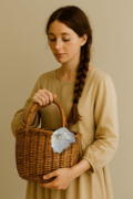 リネンの装いに添えれば、日常の中の小さな物語としても映える一点です。