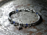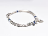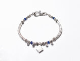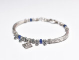 スクエアoldアフガンシルバーとインドシルバー小花、湾曲カレンシルバー、ブルービーズのブレス