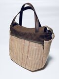 手織り布をポケット部分に使ったマチが広いB5サイズのバッグです。