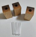 ウォールナット無垢材に穴を空け、プラスチックキャップを差したフラワーベースです。