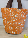 目を引くオレンジに狐、鳥、うさぎ、子鹿などがひしめいていてとても可愛らしいです。