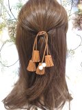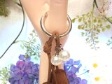 バッグチャーム ミニタッセル パール キーリング キーホルダー ブラウン カラビナシルバー