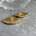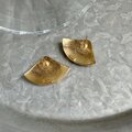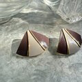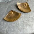 ゴールドトーンをベースに、パープルとグレージュのエナメルペイントされた、扇型ピアス。