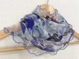 マリンブルーシルク100%ドット柄ハンドメイドネックウォーマー日焼け止めにも