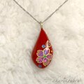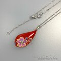 【sv925】漆螺鈿ペンダント 朱漆塗り ピンク桜螺鈿 純金箔 螺鈿アクセサリー:金沢漆器 漆工芸 螺鈿ジュエリー
