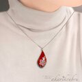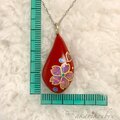 目を引く赤い漆に優しいピンク色の輝きを放つ桜モチーフの螺鈿細工を施した漆工芸ペンダント。