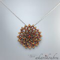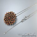 檜の木を透かし彫りに彫刻し幾重にも漆を塗り重ねた朱漆と金蒔絵のペンダント。