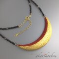 朱漆と金箔変わり塗りの赤い月ネックレス