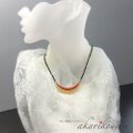朱漆の仕掛け塗りに金箔を押し研ぎ出した変わり塗り技法のネックレス。