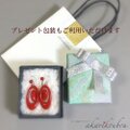 金具を含めた片方の重さが約2gと非常に軽く、存在感がありながらも日本の色特有のしっとりした落ち着きのある漆の赤。