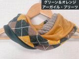 グリーン&オレンジアーガイル柄リブプリーツハンドネックウォーマー