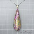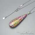 【sv925】レース模様 濃桃色螺鈿と本朱漆のリバーシブルペンダント 螺鈿 純金箔 プラチナ箔:金沢漆器 箔工芸 螺鈿ジュエリー
