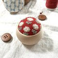 ピンクッション 針山 ♦ 木工房 ウッドボウル メープル ♦【 いつかの お花 / レッド 】