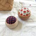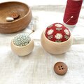 木工房で作っていただいたウッドボウルを使用したピンクッションです。